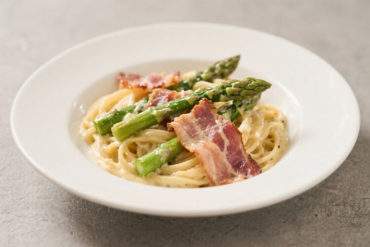 Carbonara is one of those dishes that feels fancy but comes together in minutes. This version adds crisp asparagus and smoky bacon for a fresh twist that still feels classic. The sauce is silky without any cream, just eggs, cheese, and a splash of pasta water.