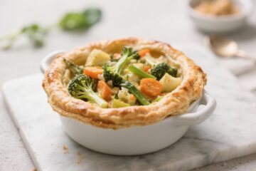 Spring vegetable pot pie is what you make when you want comfort food that still feels light and bright. It’s packed with tender peas, carrots, leeks, asparagus, and fresh herbs, all tucked under a golden, flaky crust. The sauce is creamy but not heavy, with just enough richness to bring […]
