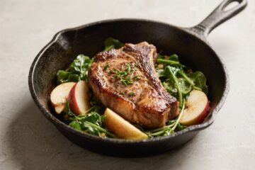 Seared pork chops, sweet-tart apples, and a tangle of tender spring greens make a simple dinner feel special. This recipe leans on pantry basics, cooks in one pan, and brings big flavor without fuss. The apples caramelize, the pork stays juicy, and the greens wilt into a silky, savory base. […]