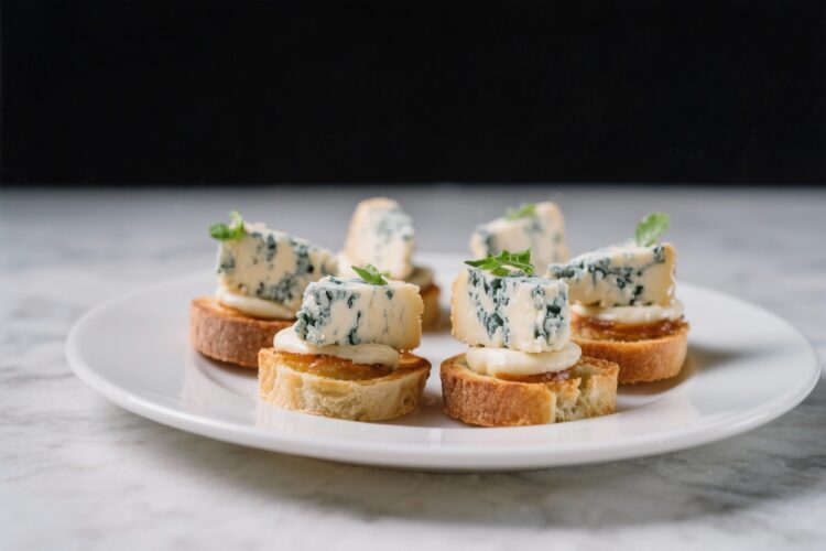 Roquefort is sharper and saltier, while Stilton sits in the middle with a crumbly texture. Choose based on how bold you want the flavor.