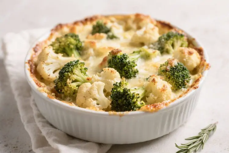 This casserole balances comfort with freshness. Broccoli and cauliflower get just tender enough to stay bright and a little snappy, while the sauce turns silky in the oven.