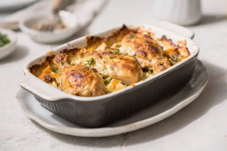 - Dairy-free: Replace cream of chicken soup with a dairy-free condensed-style soup or a quick mix of 1 cup unsweetened oat milk, 1 tablespoon cornstarch, and 1 teaspoon bouillon paste (simmer to thicken before using).