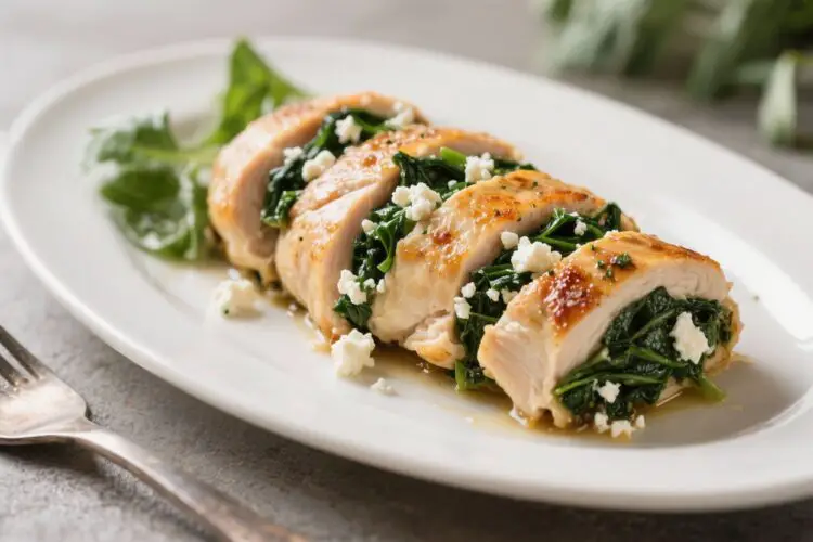 This is one of those recipes that feels a little fancy but is easy enough for a weeknight. Tender chicken breasts are filled with garlicky spinach and creamy feta, then baked until juicy. It smells amazing while it cooks and slices beautifully at the table.