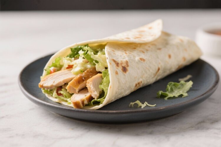 If prepping for later, keep the components separate: chicken, chopped romaine, and dressing should be stored individually. Toss right before wrapping to keep things crisp. Wrapped and dressed, they’ll keep in the fridge for up to 24 hours, but the lettuce may soften.