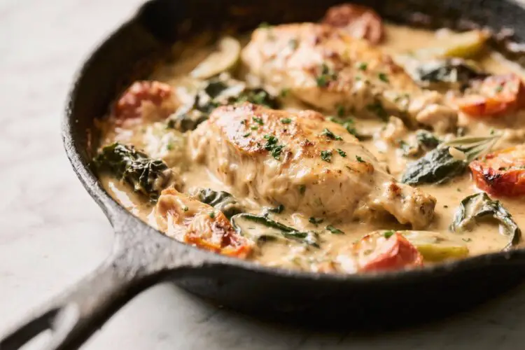 This is one of those meals that looks fancy but is surprisingly easy to pull off. Tender chicken, a garlicky cream sauce, sun-dried tomatoes, and wilted spinach come together in one skillet. The flavors are rich without feeling heavy, and the sauce is the kind you want to scoop up with bread or spoon over pasta.