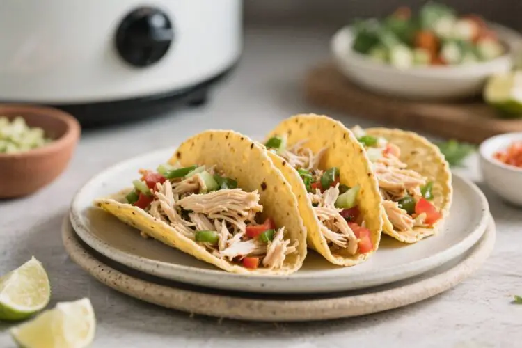 Weeknight dinners don’t have to be complicated to taste amazing. These Crockpot Shredded Chicken Tacos are proof: toss everything in the slow cooker, let it do the work, and come back to juicy, seasoned chicken that practically shreds itself. The flavors are bright, warm, and perfectly balanced, and the toppings are completely up to you.