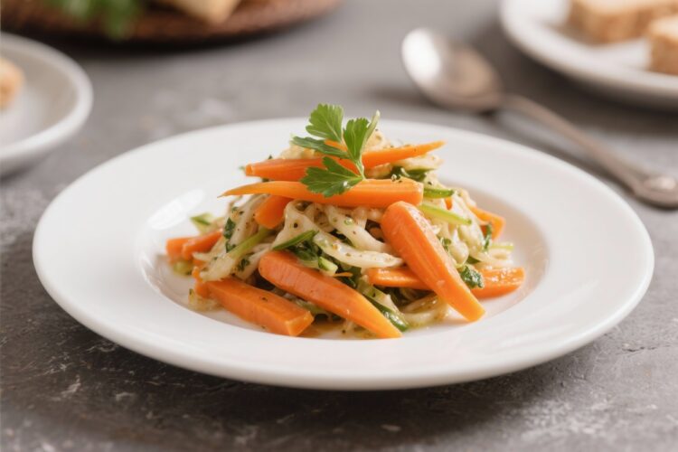 This salad delivers a lot of flavor with very little effort. The grated carrots absorb the dressing, so every bite is bright and balanced.