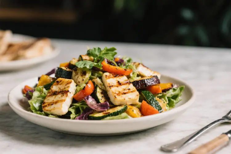 This salad balances smoky, charred vegetables with salty, crisp halloumi, creating layers of flavor in every bite. Grilling draws out sweetness from peppers, zucchini, and red onion while giving them a satisfying edge.