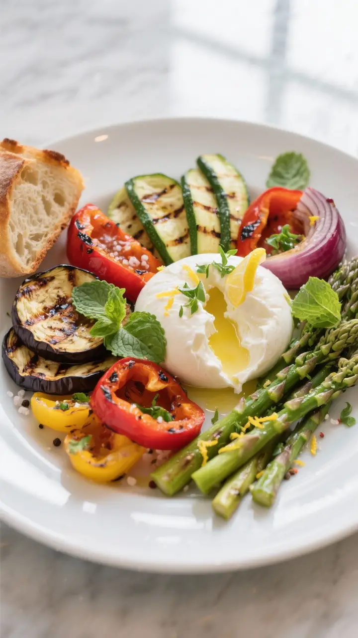 - Crispy bread element: Grill thick bread slices, rub with garlic, and serve as a base for the burrata and veg.