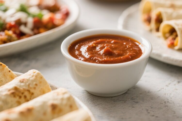 This sauce uses a classic oil-and-flour roux to create a silky base that clings beautifully to tortillas and fillings. Chili powder, cumin, and garlic powder provide deep, earthy flavor, while tomato paste and broth add body and balance.