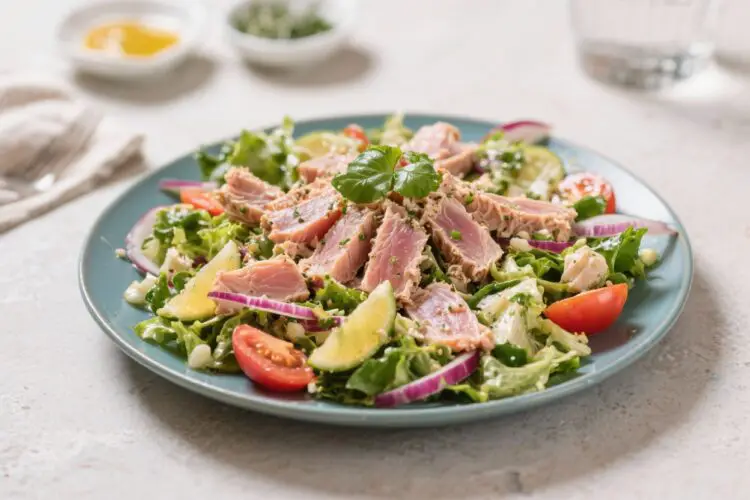 You’ll mix a fast lemon-olive oil dressing, toss it with quality tuna, and surround it with crunchy veggies, olives, and tender greens. It’s fresh, filling, and done in minutes.