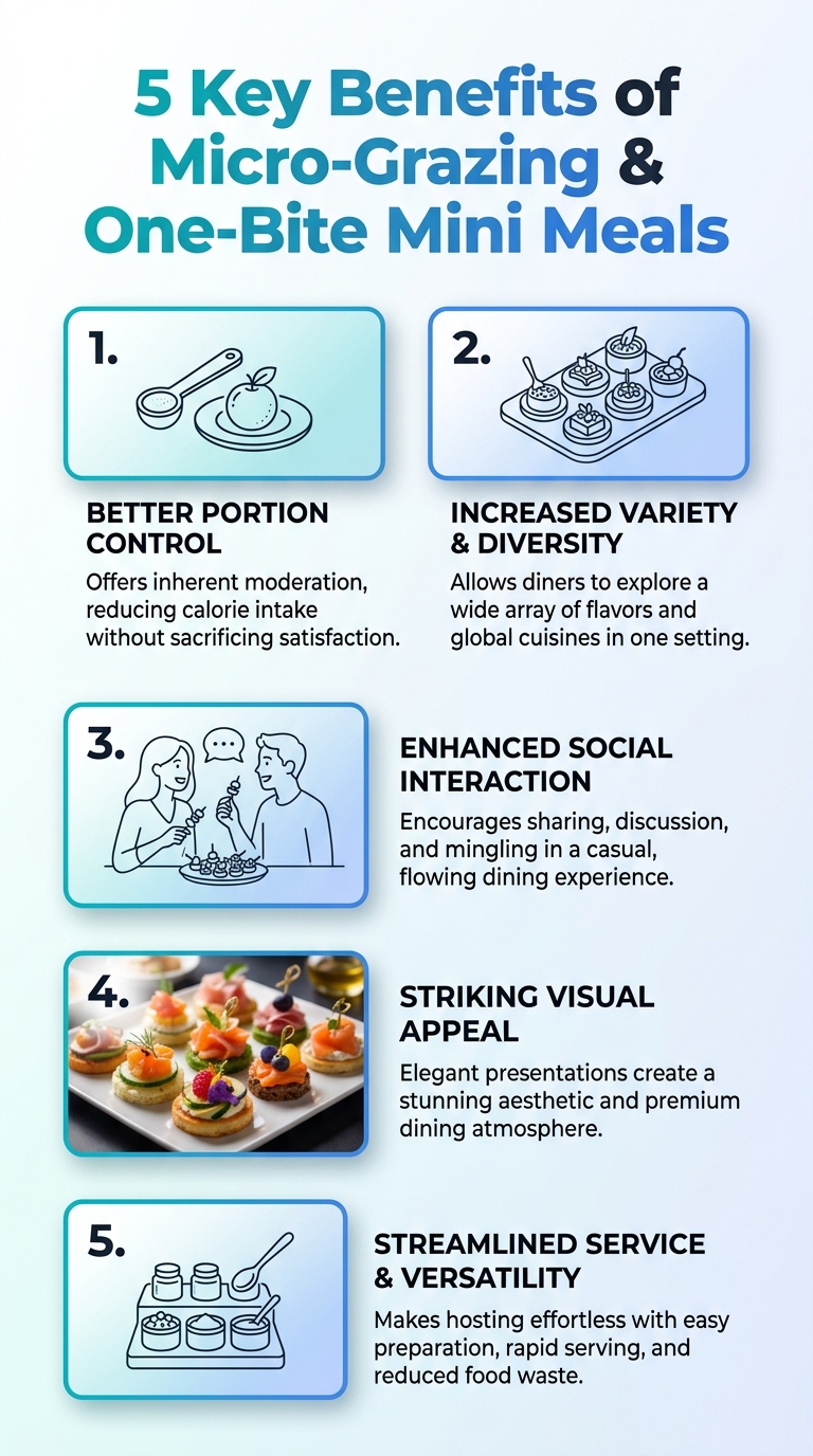 Discover the five key benefits of Micro-Grazing & One-Bite Mini Meals. Learn how small, frequent portions support better appetite control and nutrition.