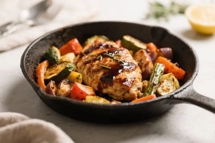 This is the kind of dinner you can pull together on a weeknight without a second thought. Everything cooks on one pan, the flavors are bold but familiar, and cleanup is minimal. The balsamic glaze brings a gentle sweetness that pairs perfectly with savory chicken and crisp vegetables.