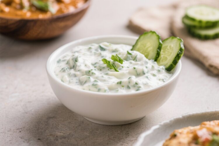 - Texture contrast: Grated or finely chopped cucumber adds body to the yogurt, so it clings to rice, naan, or kebabs.