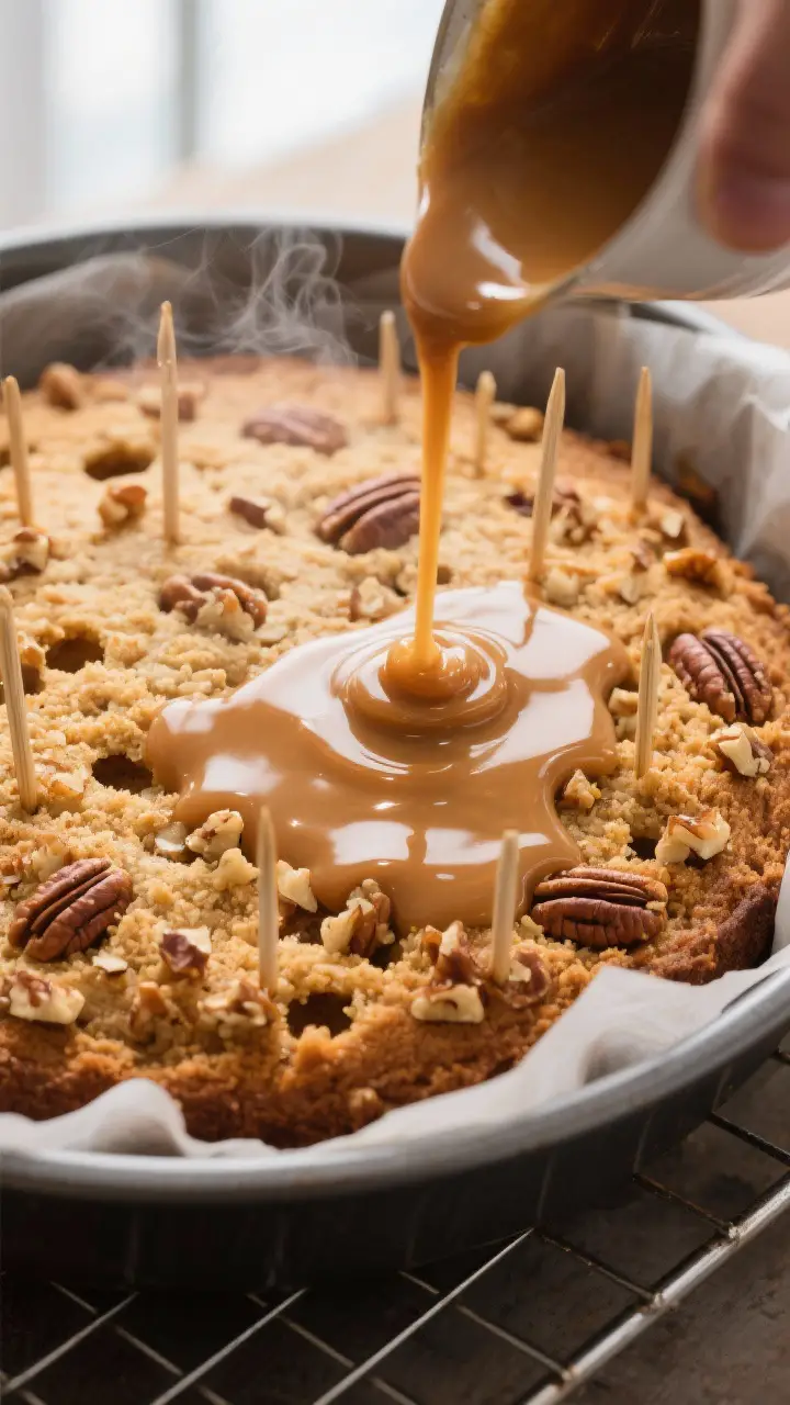 This cake blends the comfort of a classic nut cake with a built-in sauce that keeps it moist and flavorful. Instead of frosting, you make a quick stovetop sauce and pour it over the cake while it’s still warm.