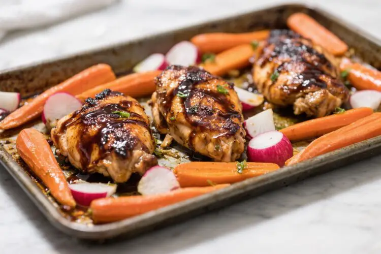This is the kind of dinner that makes a busy evening feel a little easier. Toss everything on a sheet pan, let the oven do the work, and enjoy a meal that tastes like you put in way more effort than you did. The balsamic glaze brings a sweet-tangy shine, while carrots and radishes roast into something tender, juicy, and just a bit caramelized.