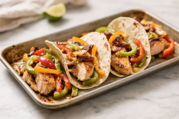 These sheet pan chicken fajitas bring together smoky spices, juicy chicken, and sweet peppers in one pan. The high heat caramelizes the onions and peppers, giving you that fajita-style char without standing at the stove.