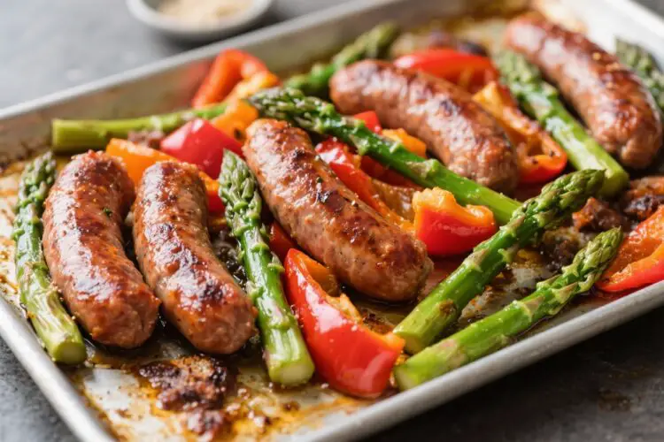 This is the kind of dinner you pull together when you want big flavor with almost no effort. Juicy Italian sausages roast alongside sweet bell peppers and tender asparagus on a single pan. Everything gets caramelized at the edges, and the whole kitchen smells amazing.