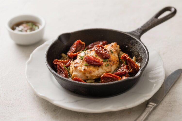 Skillet Chicken with Sun Dried Tomatoes is the kind of reliable, crowd-pleasing dinner that tastes special without much effort. It uses smart shortcuts—like jarred tomatoes and one-pan cooking—to deliver big flavor fast.