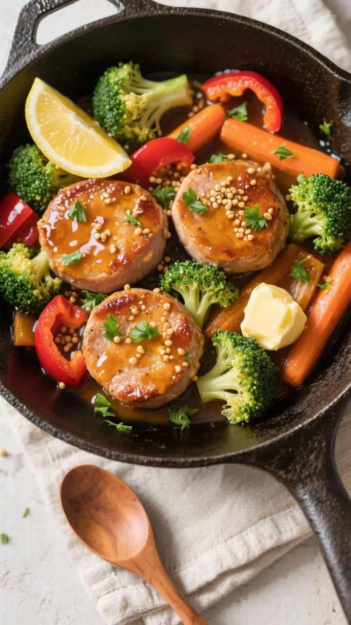 This skillet meal brings together tender pork, crisp-tender vegetables, and a glossy honey mustard sauce that’s both tangy and slightly sweet. It’s the kind of dinner that feels special but doesn’t keep you in the kitchen all night. Everything cooks in one pan, which means fewer dishes and more time to relax.