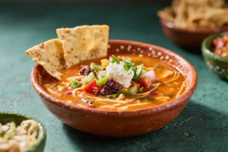 Store the tortilla strips and soup separately. The broth keeps in the fridge for 3–4 days or in the freezer for up to 3 months. The tortilla strips stay crisp in an airtight container at room temperature for a few days.