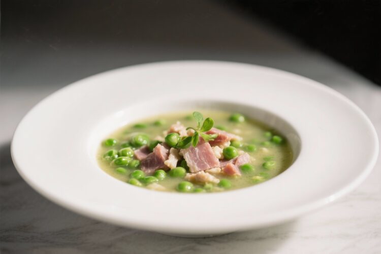 This soup balances bright spring freshness with familiar, comforting flavors. The peas add sweetness and a pop of color, while the ham brings depth and a little smoky edge.