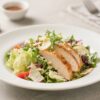- Prep the vegetables. Rinse and dry the greens. Halve the cherry tomatoes, slice the cucumber and red onion, and cube or slice the avocado. Keep everything cold until you’re ready to assemble.