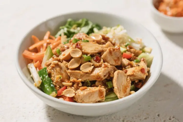 This Thai Peanut Chicken Bowl is a reliable, weeknight-friendly favorite that tastes restaurant-worthy without the effort. The creamy, tangy peanut sauce ties everything together, and the fresh garnishes keep it bright.