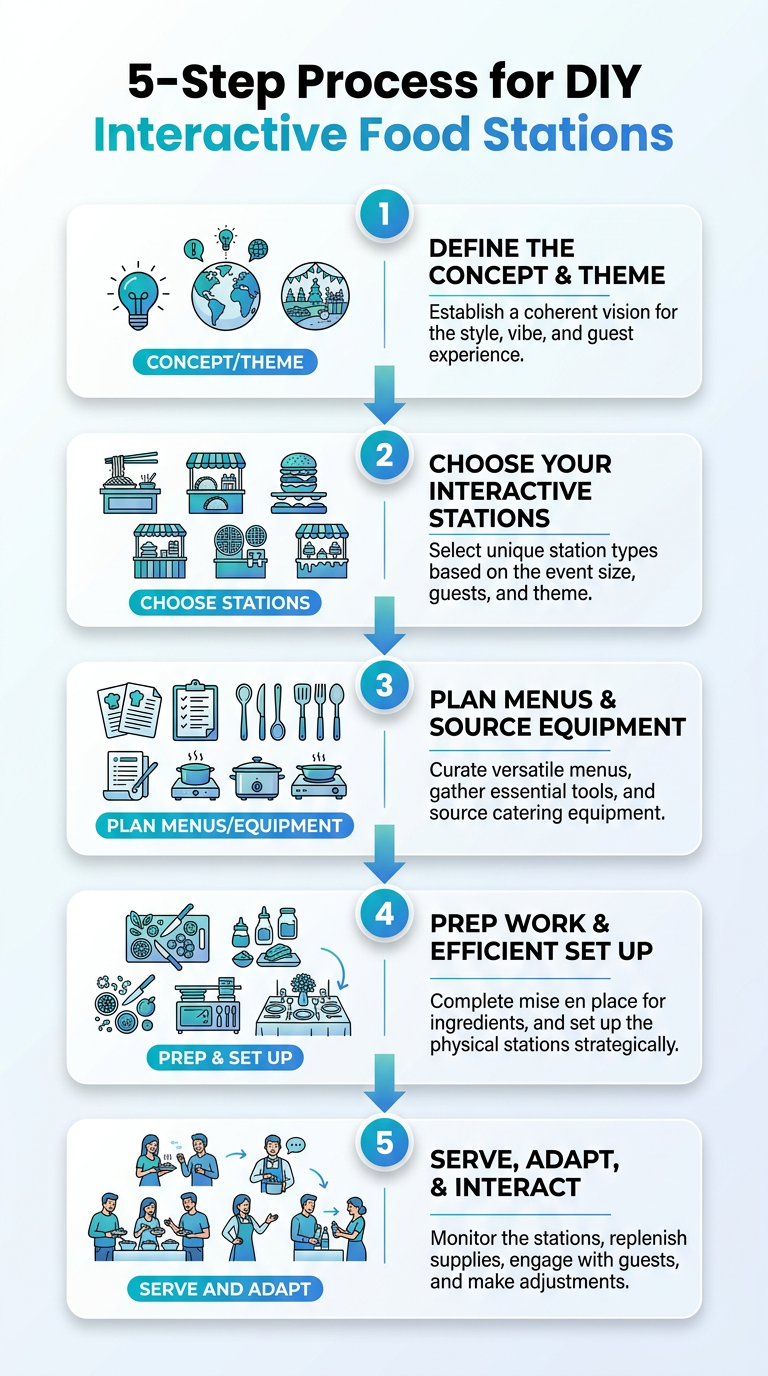 Executing a DIY food station requires more than just good recipes; it needs a solid plan. We have distilled our years of experience into a simple five-step process that ensures everything goes off without a hitch.